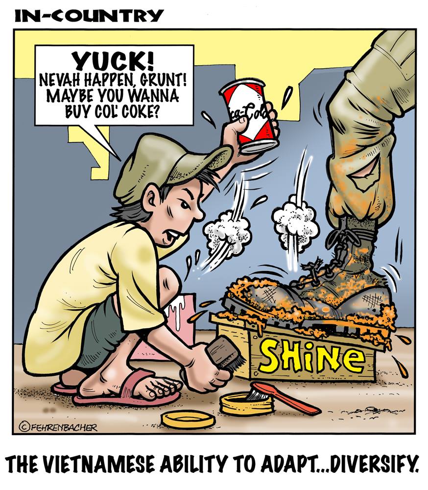 Phil enlisted in the Army in 1965 where you served for years in Vietnam.  He became a graphic designer and has worked for the state of Oregon for 26 years.  He retired in 2003 and started the Cartoon "In-Country".  The cartoons reflect his experiences during his tour of duty in South Vietnam.