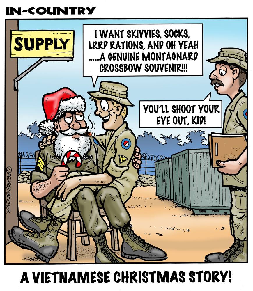 Phil enlisted in the Army in 1965 where he served for years in Vietnam. He became a graphic designer and has worked for the state of Oregon for 26 years. He retired in 2003 and started the Cartoon "In-Country". The cartoons reflect his experiences during his tour of duty in South Vietnam.