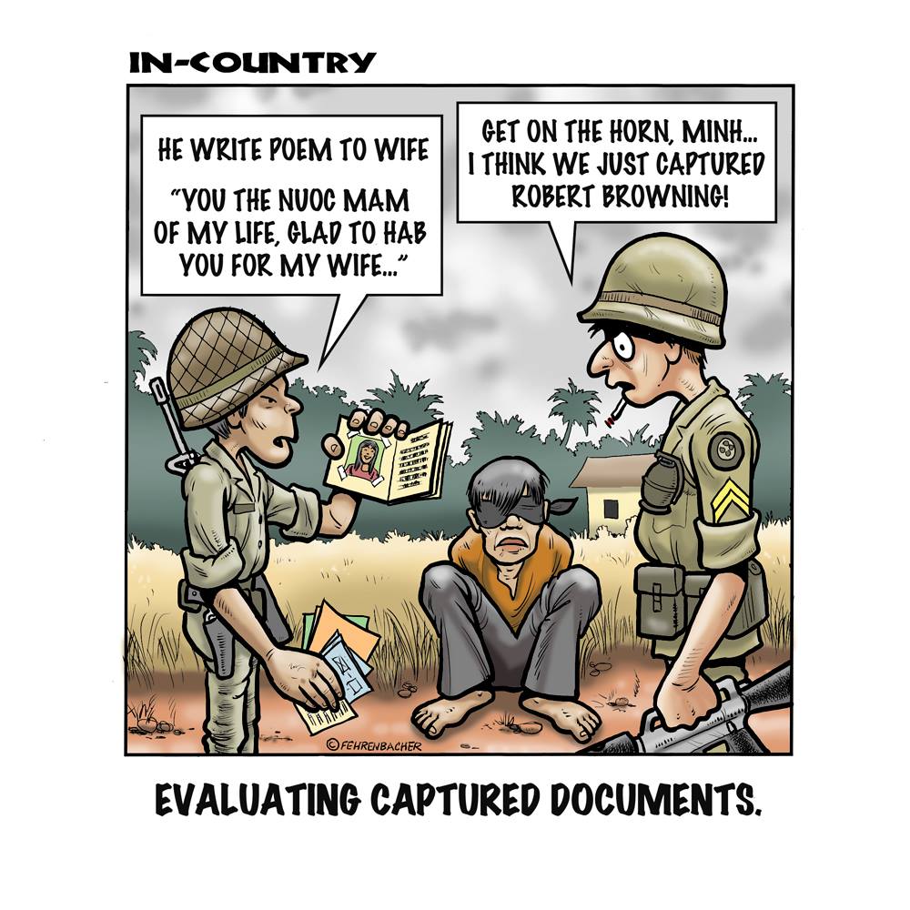 Phil enlisted in the Army in 1965 where he served for years in Vietnam. He became a graphic designer and has worked for the state of Oregon for 26 years. He retired in 2003 and started the Cartoon "In-Country". The cartoons reflect his experiences during his tour of duty in South Vietnam.