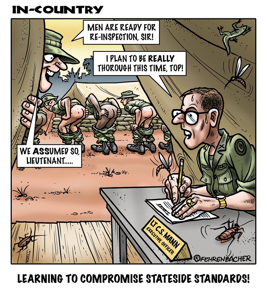 Phil enlisted in the Army in 1965 where he served for years in Vietnam.  He became a graphic designer and has worked for the state of Oregon for 26 years.  He retired in 2003 and started the Cartoon "In-Country".  The cartoons reflect his experiences during his tour of duty in South Vietnam.