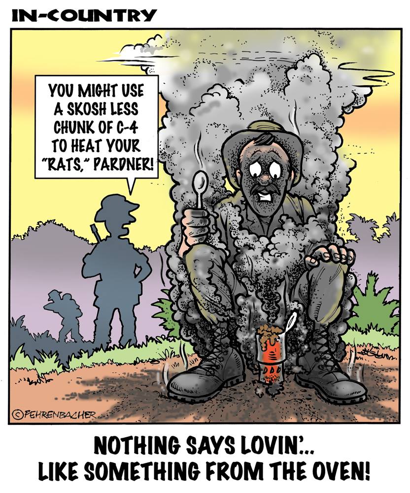 Phil enlisted in the Army in 1965 where he served for years in Vietnam. He became a graphic designer and has worked for the state of Oregon for 26 years. He retired in 2003 and started the Cartoon "In-Country". The cartoons reflect his experiences during his tour of duty in South Vietnam.